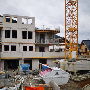 Die Deckenplatte des Erdgeschosses wurde betoniert und nun entsteht das erste Obergeschoss.